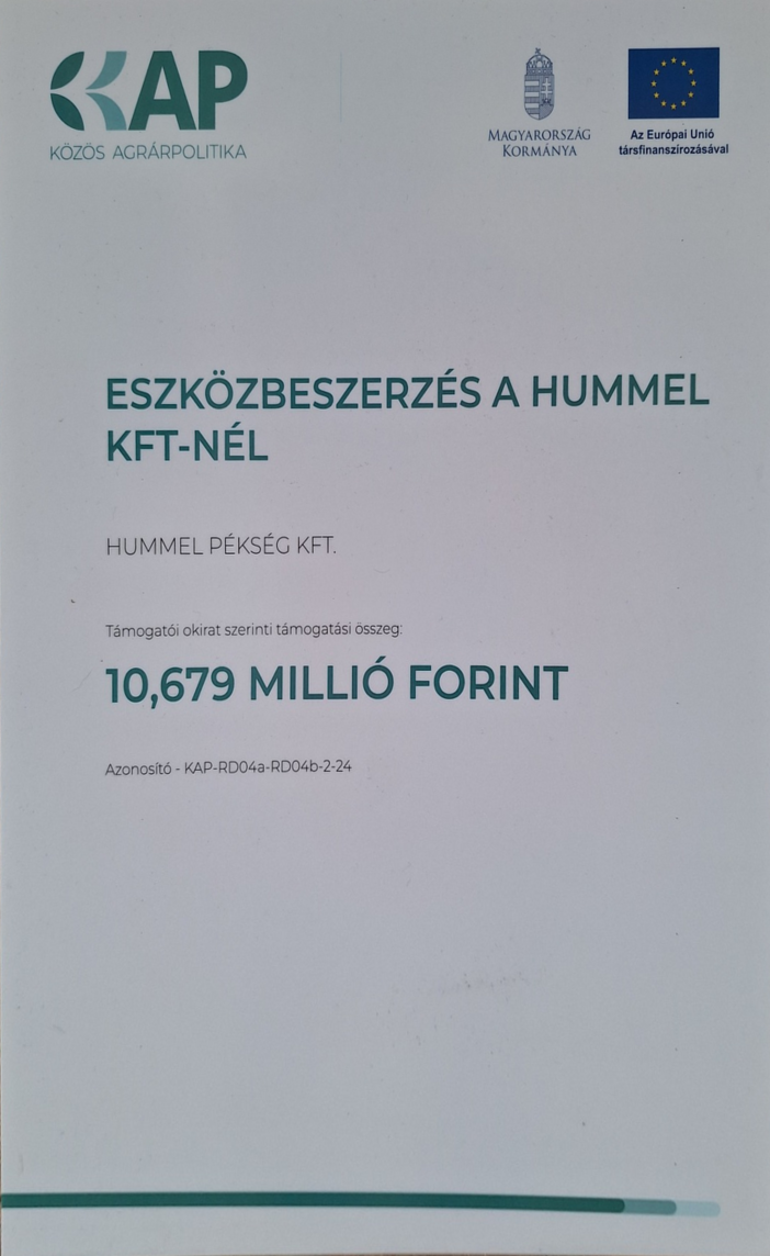 "Sütőipari eszközök beszerzése a HUMMEL PÉKSÉG Kft-nél."